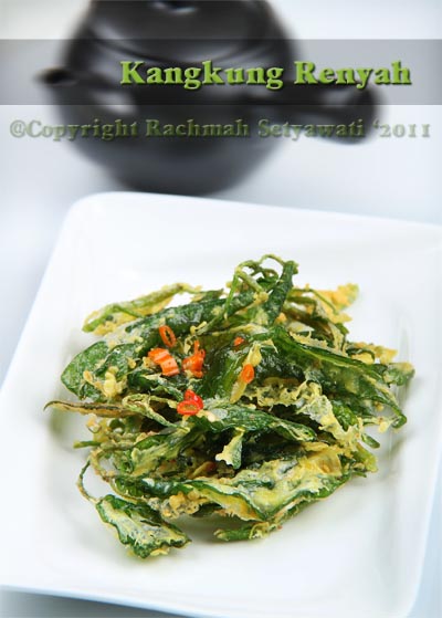 5. Letakkan/tata kangkung renyah dlam piring saji, beri sedikit saus dressing diatasnya.