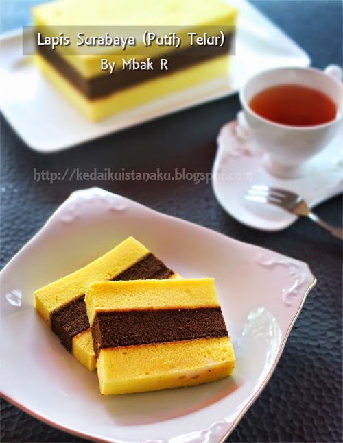 Kali ini masih memakai metode sponge cake, sebenarnya olahan putih telur bisa kita jadikan aneka macam rasa. Salah satunya lapis surabaya. Tinggal membaginya jadi 3 bagian saja, lalu satu bagian lagi beri coklat bubuk dan pasta coklat.. ta raaaa ... siap deh si putih telur tersulap menjadi cake lapis surabaya yg nggak cuman enak, bonus less kolesterol ya ...