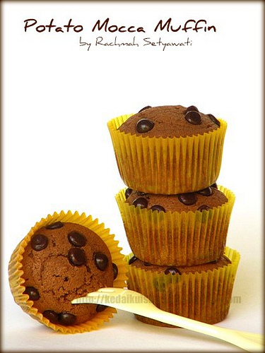4. Pour the batter in to muffin-tin, sprinkle with choco chips for topping.